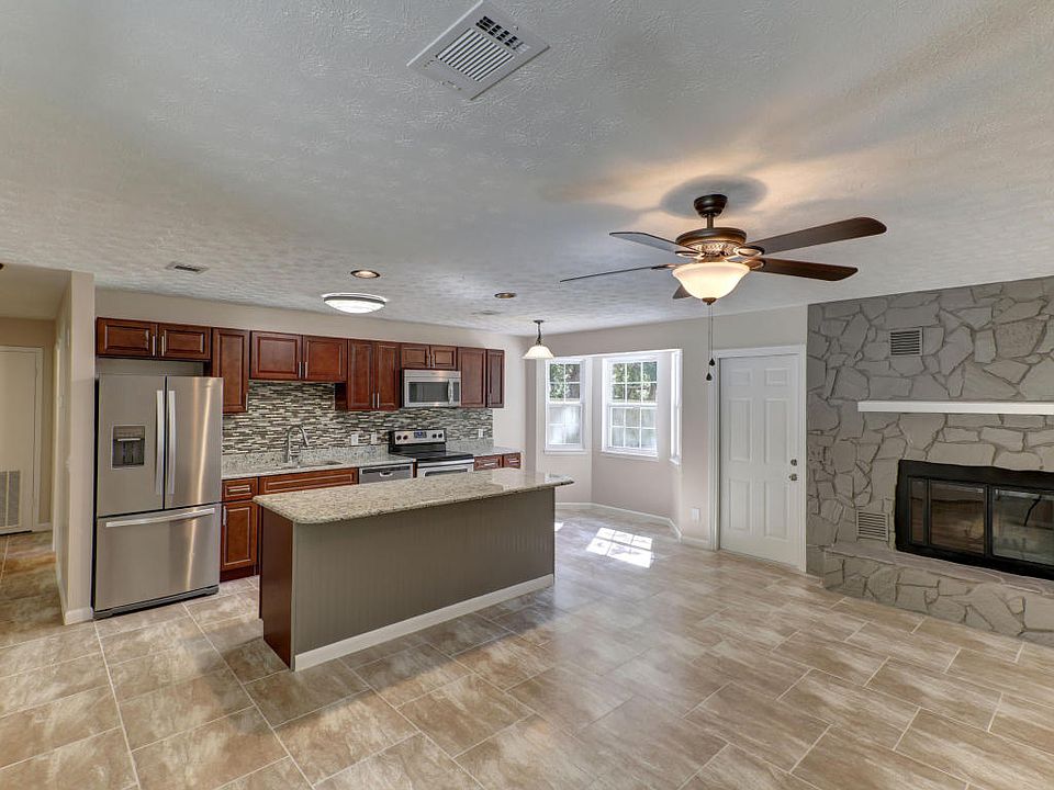 This house is a must see! It is like brand new! Almost everything has been replaced including the entire kitchen and bathrooms. All new granite counter tops, stainless appliances, microwave range hood, side by side refrigerator with in door ice dispenser, new cabinets, new floors, new vanities in the bathrooms, new carpet in the bedrooms, new ROOF, new HVAC, new vinyl double pane windows!!! Has wood burning fireplace. Master bedroom has sliding glass doors leading to HUGE back deck. Privacy fenced back yard. This home is completely move in ready. Garage with auto garage door opener has been freshly painted including the floor. Call now for your showing!