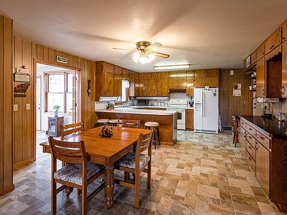 Fantastic setting! This large farmhouse sits on 4.32 acres. The main floor features open concept living, a bright and cheery sunroom, bedroom, full bath and office. Upstairs you will find 5 large bedrooms and a full bath. Many options to finish off the walk-out lower level. Heat the home by either propane or wood, whichever you choose. Brand new roof. Exterior building include a shop w/ lean-to and storage shed. Come make your memories here!