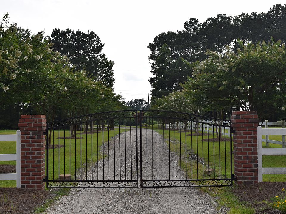 Beautiful brick home on lake & over 10 acres in Wade! Gated drive winds past large lot, lake with private dock perfect for swimming & fishing. Enjoy country living with 4 bay 30'x50' shed, separate shed & chicken coop. Horses permitted. Covered wrap around porch to enjoy views. Great room boasts vaulted ceiling, hardwoods, gas log fireplace. Formal dining room, kitchen has new (2017) granite, large appliances, under cabinet lighting & pantry. New HVAC installed 2017, new well pump, tankless hot water heater, fresh paint!