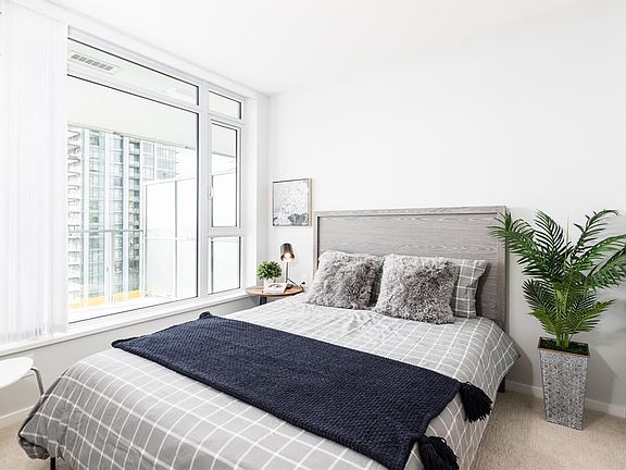 A brand new fully air-conditioned unit at Vittorio residences in the heart of Burnaby. This 2 bed and 2 bath condo features a functional floor plan with the latest designer touches, equipped with a functional island and premium integrated appliances. Live in style with spa-style showers and porcelain tiled bathrooms, a captivating walk-in closet, and enjoy your outdoor entertainment with an astounding urban view from a spacious balcony. Amenities include a fully equipped fitness studio, basketball/ court, study room, kids playground, and a residents' lounge to entertain family and friends. Walking distance to Metropolis at Metrotown, Bonsor Park and Recreation Complex, and Metrotown Skytrain Station.1 parking stall, 1 storage locker, and includes ensuite laundry. Pets & Rentals ALLOWED.