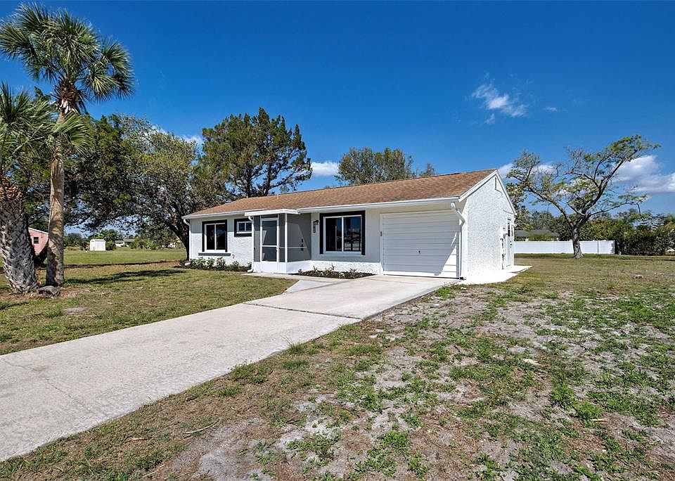One or more photo(s) has been virtually staged. Completely Remodeled 2 Bedroom, 1.5 Bath Home with Bonus Room and Stunning Yard! This beautifully updated home is move-in ready and loaded with upgrades! Featuring NEW flooring, hurricane-impact windows, a stunning NEW kitchen with modern appliances and a gorgeous island with quartz countertops, and updated bathrooms, it has everything you’re looking for. The interior and exterior have been freshly painted, creating a bright and inviting space. The roof was replaced in 2019 and the AC was replaced in 2024! Brand new EPOXY coating on the garage floors! A bonus room offers endless possibilities—use it as a home office, playroom, storage, or a large pantry. Step outside to enjoy the newly screened lanai overlooking a HUGE backyard, perfect for morning coffee or relaxing evenings. Located near a fantastic park with pickleball and tennis courts, basketball, and more, plus a community boat ramp for easy access to boating or kayaking. With NO HOA, you can bring your boat, RV, or other toys and park them right at home. This is the perfect blend of modern updates, outdoor enjoyment, and freedom. Schedule your showing today!