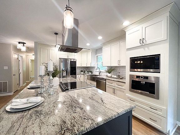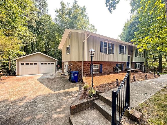 This thoughtfully updated home is Move in Ready and offers all the PRIVACY that 2+ acres can offer while being close to EVERYTHING! Enjoy the completely remodeled kitchen with STAINLESS appliances, WIFI enabled Oven & Cooktop, Built-in Espresso Machine and GRANITE countertops. The Owners Suite bathroom has a WALK-IN shower and LARGE freestanding bathtub with a double vanity sink and WALK-IN Closet. The whole home has WIFI enabled lighting control, new flooring throughout, a new water filter, ENORMOUS bonus with new gas log fireplace, new electric car charging port (Level 2) and brand new detached 2 car garage (2023)! A total of THREE full renovated bathrooms! Enjoy the backyard from one of the TWO large screened in porches or sit under the gazebo by the creek. This is truly a one-of-a-kind home with so much space for entertaining or enjoying the privacy of such a large property.