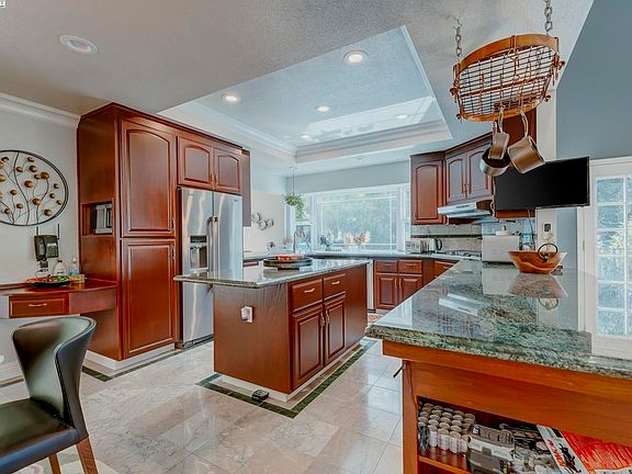 7+ private acres, this gated estate offers stunning panoramic views and unparalleled privacy. A elegant long driveway leads to lush landscaping and a serene fountain at the front entrance.Step through custom glass doors into an impressive foyer with marble and hardwood floors and designer lighting. This home features 5 bedrooms, 3 full baths, and a 5-car garage, exuding sophistication throughout. The chef's kitchen boasts premium stainless steel appliances, custom cabinetry, granite countertops, and a central island perfect for entertaining. The luxurious primary suite includes a seating area, private fireplace, and spa-like bath with a soaking tub, double vanity, and stall shower. Enjoy expansive wraparound decks ideal for hosting guests or relaxing while taking in the breathtaking views. Located in the coveted Mission San Jose school district including Hopkins Junior High and Mission San Jose High this estate is just steps from East Bay Regional Park trails and Mission Peak. 1 year or longer preferred. Tenant pays their own utilities, internet and garbage. Water is included with the rent.