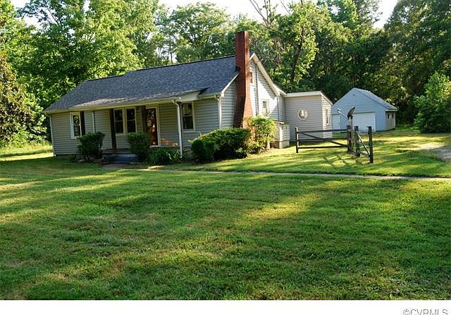 This charming home has that true cottage feel that is hard to find at this price! Sited on a 2.5 acre open parcel of land in the Varina area, this home is sure to please. The full covered front porch is attractive, with its columns and wood plank flooring. It seemingly beckons for you to come and "set a spell" on a hot sunny day. The home has great curb appeal and is framed on one side by a beautiful towering magnolia tree. The home's many exterior features include vinyl-siding, a rear deck with bench seating, and a detached garage with lots of storage. The home's interior has been nicely updated in years past. Upon entering the front door, one can't help but notice the unique rustic wood beams that frame the opening between the living room and spacious dining room. There is also an inviting den with fireplace, wood floors, and pine paneling. The spacious kitchen has lots of cabinetry and countertop space. There is a great enclosed porch/utility room with direct access to the rear deck. There is a nicely updated full bathroom with ceramic tile and handsome vanity. The bathroom is flanked by two spacious bedrooms. The third bedroom is tucked away in the rear of the home.