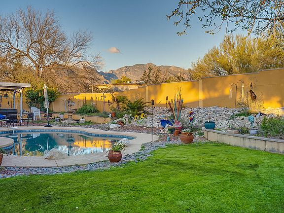 Look no further, this home has it all! Beautifully updated 5 br, 3 bath, 4 car garage, resort style living with fabulous views! Tile throughout, granite counter-tops, Jennair double ovens, large pantry, ceiling fans in each bedroom, and back yard heaven! Enjoy the large porches, Cantina, Pebbletec Salt Water pool, hot tub, Catalina Mountain views from the back yard, and gorgeous Tucson Mountain / Sunset views from the front yard. Located next to Pima County open space, making it a great neighborhood for walking, biking! Park your RV/Boat/Toy, plus 30 amp outlet at garage and south yard wall. Owner-agent