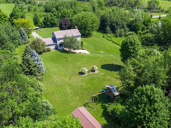 Beautiful custom built Colonial situated on 11.6 acres. Privacy and Nature Abounds!!! 4 bedrooms w 2.5 baths. Large windows provide an abundance of natural light throughout. Large rooms incl the living room with a warm & inviting Fireplace. Dining room is presently used as a family room which leads to the Eat-in Kitchen, updated in 2015, has an island, walk-in pantry & a sliding glass door opening to the back porch. 1st floor laundry. 2 story foyer leads to the 4 bedrooms incl a master bedroom w a master bath. The lower level (not included in the sq ftg) is spectacular, finished on one side with a custom built stone wall for the wood burning stove, kitchenette or wet bar, a bonus work out room & walk out to the back patio. The other side is a large workshop. Backyard boasts a patio, fire-pit, playset, outbuilding and the remainder of the 11.4 acres. One of a kind home on a private level lot! Delayed showings until Aug 2 at 6:00pm. Sellers will be looking at all offers August 9 at 4:00pm.