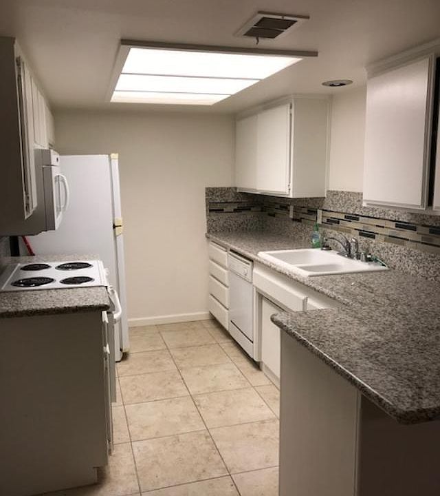 interior recently updated with floor tile, paint, cabinet and door hardware.