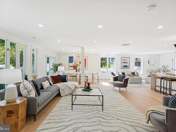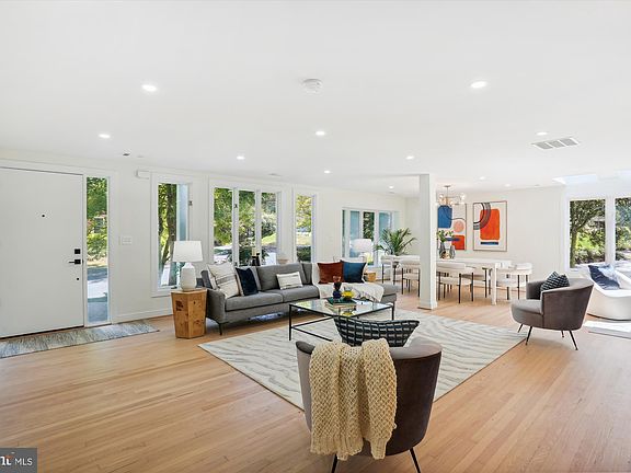 This airy, open, and spacious 3-bedroom 2.5-bathroom Mid-Century Contemporary is the newest creation by Alex Boyar of AB-Urban Development, a decades-long curator of smart residences with style. Transformed from top to bottom, this special residence offers the best model of one-level living with its dramatic expanse of openness, eliminating the obstruction of walls and stairs! Open the door to a welcoming foyer that flows to a stately living room with a fireplace and a grand dining room that can seat twelve. The new white-on- white kitchen with quartz dine-in bar and skylit family/gathering room spill through French doors to the welcoming and pleasingly private flagstone patio and lovely, landscaped backyard. The primary bedroom suite is a serene sanctuary with space for an office or sitting section. The generous driveway can accommodate four cars. The superb corner location is a breeze to Bethesda urban amenities, river activities, and quick access to I495 and Clara Barton Parkway.