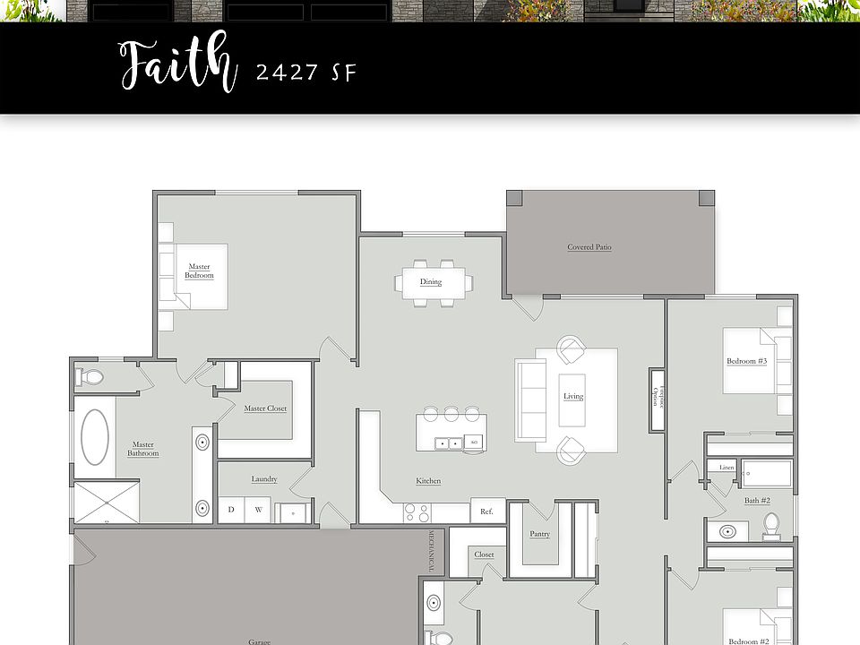 This beautiful home is 2427 sq ft on a 0.38-acre lot. Comes with 4 spacious bedrooms, 3 full bathrooms, a large walk-in closet in the master bedroom, a double sink vanity, bedroom #4 has a walk-in closet and attached bathroom, a 3 car garage, an island, and a covered patio and entry. This floor plan is available with a 9' or 10' ceiling and a wide variety of upgrades.