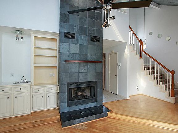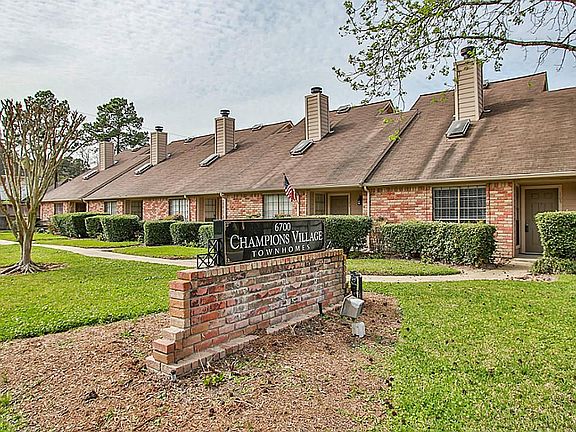 Beautiful 2/2 loft style end unit townhouse in small complex tucked into Champions. Master up w/skylight & private balcony. Sunken living room w/custom gas log fireplace, wet bar, wood flooring & high ceilings open to loft. Corrugated tin ceilings, C-tile in kitchen/breakfast room. Newer stainless kitchen appliances,tile back splash, frig & washer & dryer incl. Fresh int. paint, upgraded lights, 4-fans, alarm, pantry + utility closet. Private fenced yard. 2-car carport w/storage.