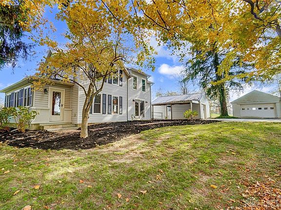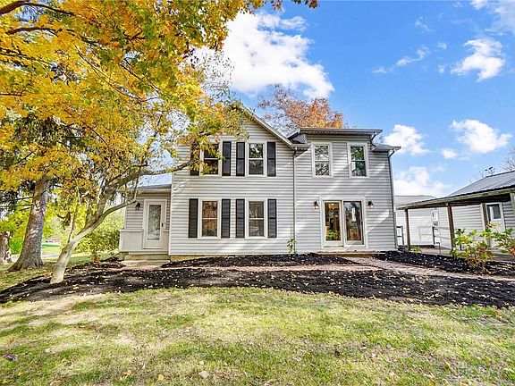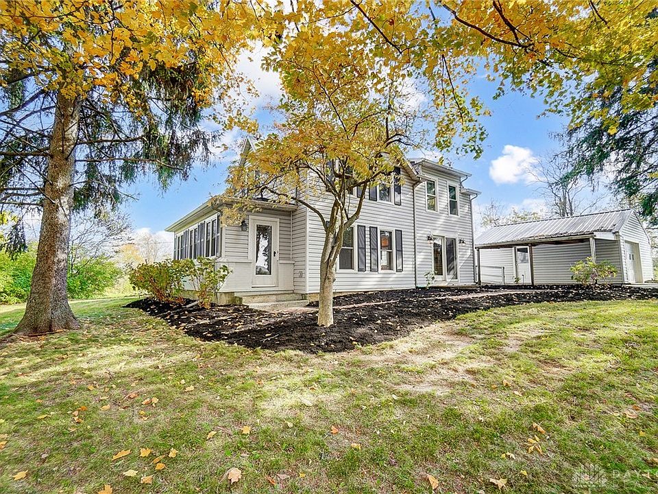 Experience the charm of this spacious 4-bedroom, 2.5-bath traditional home, set on over half an acre of beautiful rural landscape. With over 2,600 sq. ft. of living space, mature trees, and no rear neighbors, this property offers a peaceful retreat. The first-floor master suite serves as a versatile Mother-in-law suite, complete with a cozy sitting room, kitchenette, full bath with a walk-in shower, and ample closet space. For the home chef, the gourmet kitchen boasts custom poplar cabinetry, stainless steel appliances, and a gas range, perfectly suited for creating memorable meals. The home’s design features a spacious living room and dining room, ideal for gatherings, while the bright family room, filled with natural light, invites relaxation and includes built-in cabinetry with a wet bar. A private study and convenient first-floor laundry round out the main level. Upstairs, you’ll find three large bedrooms and a full bath, offering plenty of space for family or guests. Additional highlights include stunning hardwood floors and natural woodwork throughout, two detached 2-car garages, and access to Bethel Local Schools. Conveniently located close to I-70/75, WPAFB, and Dayton, this home offers a blend of rural tranquility and easy accessibility to nearby amenities