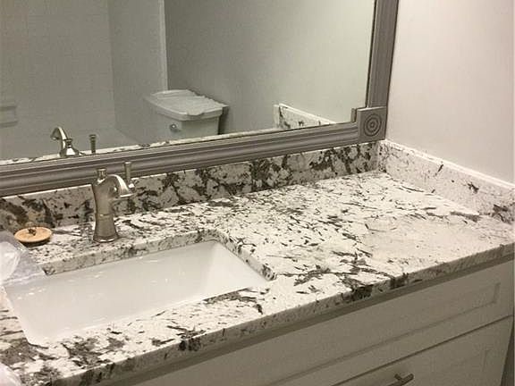 - Kitchen Features: Breakfast Bar, View to Family Room, Stone Counters, Cabinets White