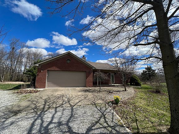 Ideal location whether you work from home or you commute. Close to SR 109, I 70, SR 234 and I 69. 5.2 acres bordered to the east by an abandoned railroad tracks and wooded area at the rear of the property. Home has two outbuilding both offer electric. One is concreted the other is gravel. Small workshop is pretty much finished out and offers a wood stove as a heat source and lots of cabinets.. Home has beautiful hickory flooring throughout. Split bedroom plan. Nice open concept floor plan. All appliances including washer, dryer and water softener will remain. Total electric home. This home is in an estate. Heirs are working diligently to clean out the barns and clean up the property. Home is pretty much emptied. No sellers disclosure as they have never lived in the home. Seller know their father did use the wood fireplace but they are not aware of the last time it was used and do not warranty the condition of it. Home just needs some cosmetic updating. Please give grace as they are still removing items from the property.