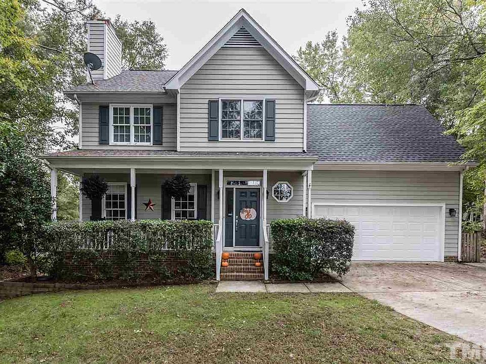 Beautiful 4 bedroom home with incredible features on a cul-de-sac! Decorative arch ways, updated kitchen, tray ceiling in formal dining room, second floor laundry. Enjoy sitting under the pergola relaxing by the fire pit on these beautiful fall nights. Nice 1/3 acre wooded lot with fence provides privacy. Enjoy an afternoon on the rocking chair front porch. Roof replaced April 2017, water heater 2016. Location is in walking distance to greenways, parks and schools. Close to 540, Wake Tech North.