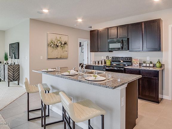 This all concrete block constructed, two-story plan has a large open-concept downstairs. Upstairs, the oversized owner's suite can easily fit a king size bed and includes a large walk-in closet as well as ensuite bathroom with double vanity. Three other bedrooms share a second upstairs bathroom while the loft provides an extra area for work or play. This home comes with refrigerator, built-in dishwasher, electric range, and microwave as well as washer and dryer. Pictures, photographs, colors, features, and sizes are for illustration purposes only and will vary from the homes as built. Home and community information including pricing, included features, terms, availability and amenities are subject to change and prior sale at any time without notice or obligation. CBC039052