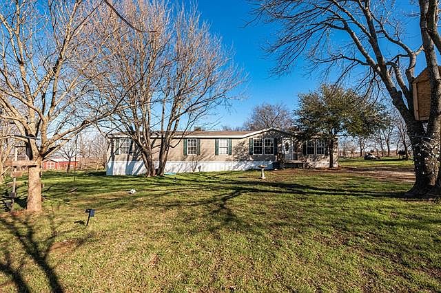 Over 4 ACRES of land! Beautiful property Double Wide with 4 Bedrooms 2 Bath! Nice country setting with several established fruit trees such as plum, fig, and peaches. Plenty of shade for those hot summer days. Large open living area, perfect for entertainment. Spacious kitchen with lots of cabinets and a pantry closet with a second possible pantry in the hall area. Large Master suite has a walk in closet, garden tub and separate sinks and shower. Repairable barn located behind the home as well as a separate storage garage and a water catching pond at the end of the 4 acres. Many new builds are going up in the area. Minutes away from Chisholm Trail Tollway.