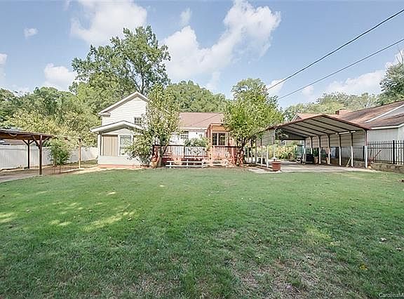 This Charlotte two-story home offers a den, granite kitchen countertops, a walk-in closet in the master suite, a covered deck in the private backyard, and a two-car carport.