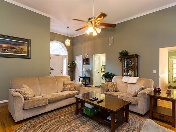 Custom brick ranch on 2 acres. 3Br, 2.5BA with 12'ceilings, hardwoods & crown in the family. Owner's suite w/trey ceiling, huge bath & walk in closet. Kitchen w/bar & eating area and separate dining room. Great side porch & patio, retaining wall & lush landscaping. Reduced to a great price.