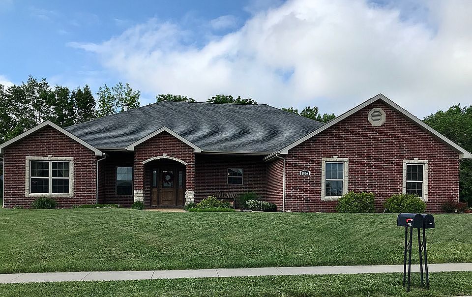 For Sale by Owner- Call 573-291-4149. This beautiful CUSTOM split-bedroom home built in 2011 with oversized two car garage. Brick and rock frontage with stamped concrete sidewalk entrance leading to arch entry way and stamped concrete back patio. Located on a dead-end street making an excellent location for kids, including a large, flat backyard. Open floor plan includes 3 bedrooms and 2 baths, jetted tub in master bath, and a walk-in closet. Extra storage above and in garage. LOTS OF CUSTOM features including custom made wood cabinets throughout home, two-tiered kitchen island with seating up to 8, 9ft kitchen ceiling. 11ft living room ceiling with 11 ft rock built-in wood fireplace and box beam ceiling, hardwood floors, double tray trimmed master bedroom ceiling with dimmed lighting. Electric heat pump.