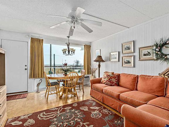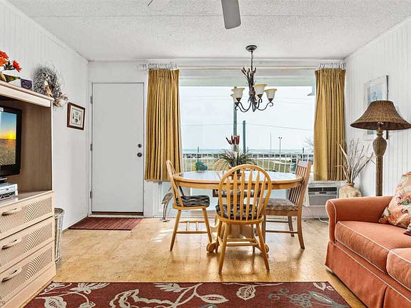 Amazing, beachfront condo just steps to the beach! You will be greeted by a patio that is perfect for morning coffee or evening drinks while watching the ocean as well as front row seats for the concert evens across the street. Renovated from top to bottom featuring a living area with sofa bed, kitchen with granite countertops, updated backsplash, and a bedroom which holds 2 queens. The hall bath hosts a modern vanity and comfort toilet. All walls have been updated with wainscoting, and newer cork flooring. Additionally, you will enjoy the heated swimming pool, onsite management, onsite laundry, game room, on-site parking, and incredible rental income. This unit also comes fully furnished Donât miss your chance to own this incredible condo in Wildwood Crest with wonderful amenities!