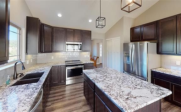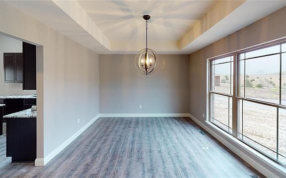 Beautiful 1.5 story with 2276 sq. ft. of living space. Ready to move into! Kitchen features 42" cabinets, granite countertops, can lighting and under cabinet lighting. Cathedral ceilings in kitchen and breakfast room, trey ceiling in dining room. Covered 12x12 patio. Direct vent fireplace with marble surround and blowers with upgraded mantle. Upgraded flooring and lighting throughout. Laundry room with mop sink and cabinets. Master bedroom suite, master bath features onyx shower, double bowl sink, adult height vanity and toilet. Full rough in bath in basement. 4' width extension on garage, garage door opener and keypad and upgraded garage door.