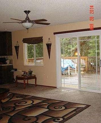 Nice cozy remodeled 2 bdrm 2 bath home with large living room and brick fireplace. Kitchen has upgraded electric stove and microwave. Tile entry way, french doors leading into office/den (being used as a 3rd bedroom with a closet). Newer vinyl windows and sliding door, large wood deck off living room and lower level concrete patio. Roof is newer there is RV parking. Home also features central heating and air conditioning. This home truly invites you in.