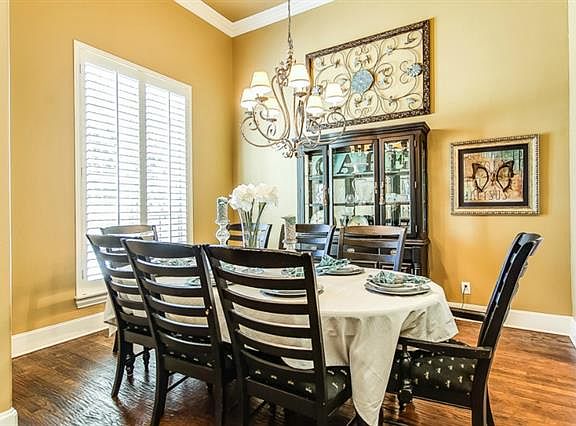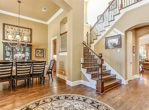 Exquisite Cstm Hm Huntington in Stonebridge Ranch. Offers grand entry, HS hardwood flrs thru out, expanded base & crown, dec lighting, plantation shutters, iron balusters & more. Stately study w builtins. Gourmet Kit w granite, ss appls, & isld. Prvt Mstr ste dwn w sitting area, H+H vanities, jetted tub sep shwr & WIC. LG fam rm w stone fp overlooking pvt backyard oasis w cvrd patio, pool w spa, outdoor living w kit & BBQ. Lg Game rm & Media up.