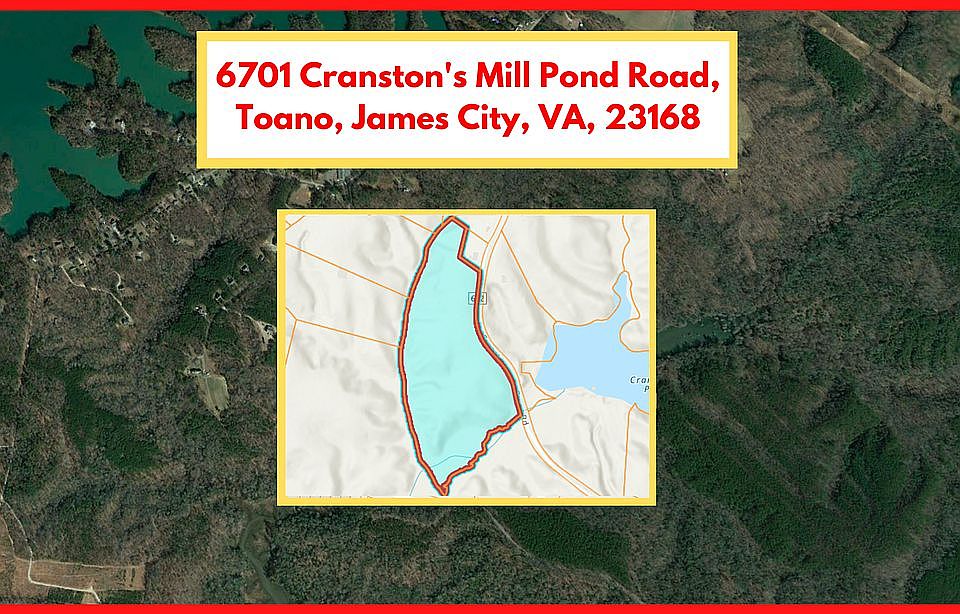 22.06 Acres in Toana, VA - Near at Virgina Beach - Comps sold for $580k and More! BUY FOR ONLY $399,900!! Note: We sell real estate at discount wholesale prices! This Property is located near at Virginia Beach! You can really enjoy your peace and can be completely independent from everything. You can build a single family home here. About 1000 ft Road Frontage Electricity and water is is already in the street. NO HOA fees! You will not find a property for this price in the whole area! Call us today! Buy this property today for just $399,900 Interested? Call or txt Daniel Fernandes @ 239-900-1285 Property Type: Land Sale Price: $399,900 State: VA County: JAMES CITY APN (Assessor's Parcel Number): 22-3-01-0-0041 Property Address: 6701 CRANSTONS MILL POND City: TOANO Zip: 23168 Size: 22.06 Acre(s) Short Legal: ADJ HARTMAN JONES Zoning: A1 Road Access: Yes - Paved Annual Taxes: $973 Market Value: Similar lots in the area are selling for $580,000. Get this property now for $180,100 below market value... Own it today for just $399,900 To buy this property at this discount price call or txt Daniel Fernandes @ 239-900-1285 Don't miss out on this great deal call or txt us now! Note: We also may have other property at bargain prices just like this available - ask us when you call!