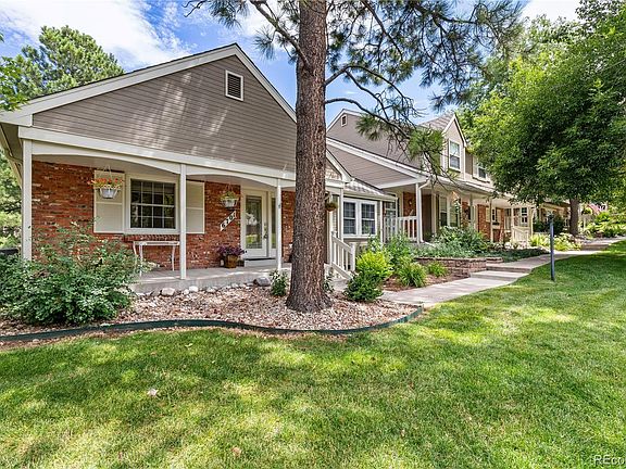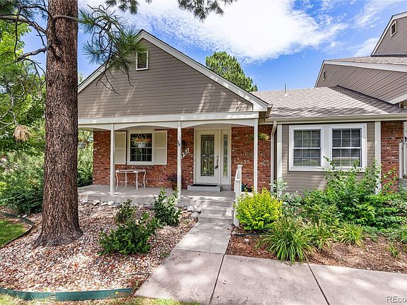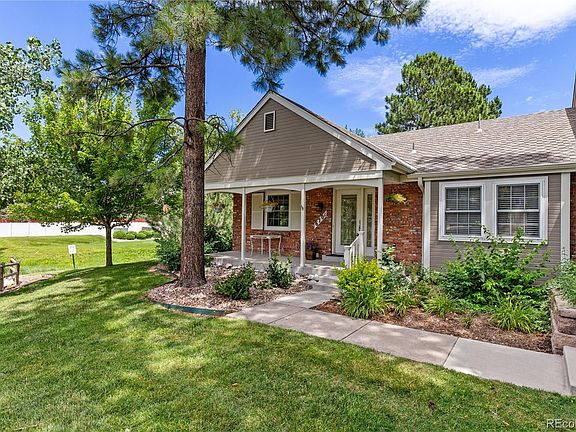 WELCOME TO YOUR NEW BEAUTIFUL HOME IN STURBRIDGE AT HOMESTEAD CONDOS! THIS RARE VAULTED RANCH MODEL IS SITUATED ON A DESIRABLE END UNIT IN VIEW OF OPEN SPACE! Here you'll enjoy a peaceful ambiance and established community with the Little Dry Creek running through it, a clubhouse, pool, tennis courts and close proximity to miles of trails. The residence faces a large luscious lawn with mature trees, and borders open space. From the covered front porch step inside to a sunny, perfectly maintained home--stained glass entry doors, gleaming hardwoods, an open vaulted living space with brick fireplace, a beautiful updated kitchen with slab granite counters, stainless appliances, 42 inch cherry cabinets, pantry/cabinets with pull-out drawers. Both bedrooms are on the main with views of the open space; the Primary with ensuite 5-piece renovated bath and views of the patio. The full bath features a jetted soaking tub. Enjoy evening dinners on the beautiful enclosed stamped concrete patio just off the living room, which leads to a 2-car detached garage with new metal exterior access doors. The basement offers plenty of storage and room to expand, complete with laundry room, utility sink, and a full set of cabinets. Spend your days doing what you love most as the HOA takes care of all yard work, exterior building maintenance, trash removal and is responsible for sewer from garage to the main. Hurry to see this great home! It won't last long!
