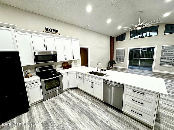 Come see this beautifully renovated home off Fawn Ridge in the Crane Creek Subdivision of Viera. With an open floor plan, vaulted ceilings, stunning fixtures and a brand, new kitchen & bathrooms, this turnkey house is ready for someone to call it 'Home'!! The master bathroom has not only a huge walk-in shower but your very own bathtub to relax with a glass of wine while soaking after a long day. This home also has received a fresh new coat of paint on the interior & exterior, front & back screen porches, along with the stunning garage floor. This home will offer the most favorable 4-point inspection and rates due to an updated HVAC, water heater, electrical, hurricane shutters and a roof approximately 10 years old. Make your showing today before it's gone tomorrow.