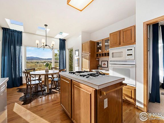 This home checks boxes you didn't think could be checked at this price. The bluff on the west side of Ridgewood Hills provides arguably the best mountain views in Fort Collins and this home is situated perfectly for maximizing this vista. Backing to the Colina Mariposa preserved open space, you get unobstructed and truly panoramic views from Rocky Mountain National park all the way to Horsetooth and onto Greyrock Mountain and even gaze into Wyoming from this property, the views are that good. This home has soaring ceilings on the main and upper levels and huge windows and skylights that provide a great sense of space and light. All New Pella windows, solid oak floors, and solid wood doors. Incredibly clean and well maintained with only 2 owners and has been completely pet and smoke free since it was built. A main floor bedroom with french doors and an attached 3/4 bath also makes a perfect office space. The primary suite is upstairs and has a bay window sitting area with the best views in the house, another bay window in the breakfast area to take in the incredible vista while you sip coffee. Skylights throughout the home allow you to literally stargaze indoors. An unfinished basement with egress and rough ins provides room for future expansion. The 3 car garage fits a full size truck and has epoxy floors and is fully drywalled. Awesome neighborhood pool just underwent a huge renovation. A well run HOA and active social scene, books clubs & social committee. Walk to parks, elementary school, pre school/daycare, neighborhood bar, or get on your bike and be downtown at the Rio for a Marg in 25 minutes without leaving the bike path. Elk and bobcat walking down the street in South FoCO? Yep! The ability to see a horizon line is linked to mental health benefits including reduced stress, feelings of freedom and possibility, mindfulness, awe and reductions in cortisol. Don't believe me ask Chat GPT!