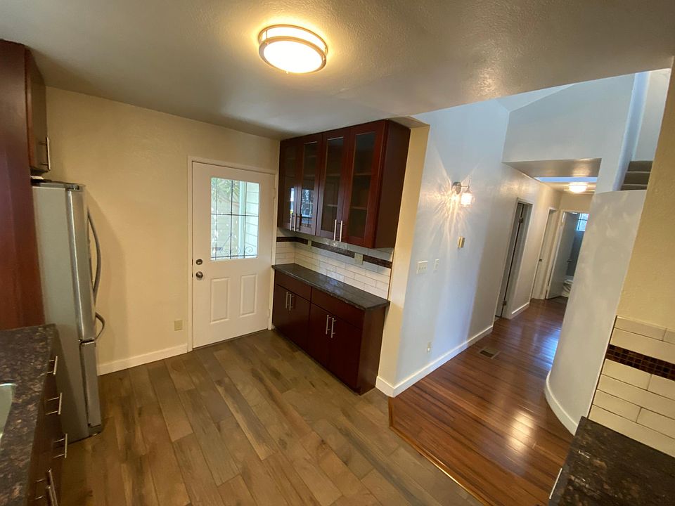 Built in 1992, this 3bed/2bath El Cerrito home is located only 3 blocks from BART, local and chain grocery stores, and shopping. The house boasts airy, high ceilings and both hardwood and tile floors in the common spaces to keep it cool in the summer. Central heat and carpeted bedrooms keeps you warm and cozy in the winter. The recently updated kitchen is furnished with stainless steel appliances, and includes direct access to the private backyard. Two downstairs bedrooms with spacious closets complete the first floor. A master bedroom with a full sized walk in closet, second bonus closet, and updated ensuite bath make up the second floor. An attached two car garage houses on site laundry and utilities, all under one roof. Mature landscaping adds curb appeal to your new home. One year lease. Renter pays all utilities (power, water, garbage, cable/internet.) Pet rent is $100 per month. Strictly non-smoking anywhere on the property.
