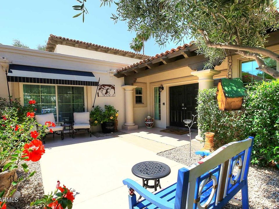 Prime Scottsdale Location across the street from the popular Ritz Carlton Development . Surrounded by top restaurants, golf and shopping . Enter this single level home through large private ,charming courtyard. This home was extensively remodeled a few years ago including new kitchen, bathrooms, flooring, plumbing , windows , sliders , electric., lighting , landscaping and appliances. New AC 2021 ,new roof 2019. Guest bedroom has a nook set up as office . The private backyard is an entertainers delight!This private, gated community offers lush grounds, tennis courts, clubhouse with fitness centers and a resort like pool and spa.This one won't last !