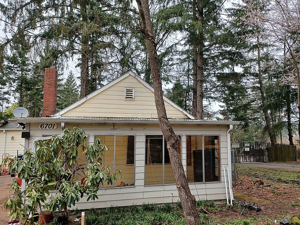 2 bedroom, 1 bath house and a huge 0.22 acre lot ideally located in southwest Portland in an unincorporated area off Taylors Ferry Rd between Portland, Tigard and Beaverton. This is an area of $600,000 – $800,000 homes and this is the least expensive one on the market by far in that area. The house is small and dated but will be clean, freshly painted inside with new carpet and the yard landscaped. All work should be complete in several weeks, still time to pick your colors! The back and side yard are adjacent to water bureau land for extra privacy. There is plenty of space to expand on the lot, and area valuations would support a good return on investment for an addition. There is a large carport and space for RV parking. There is an enclosed front porch and deck off the rear of the house with a territorial view. The house is currently a bit rough, we will post updated pictures as the renovations are completed. Are you working with a real estate agent? Bring them along, we will pay a 2.5% commission to the buyers agent.
