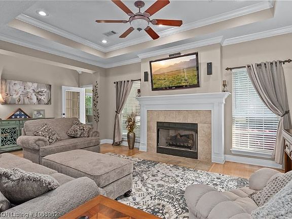 You'll definitely appreciate the attention to detail of this meticulously maintained home that is conveniently located on a quiet cul-de-sac in coveted Riley Farm subdivision. This home has a wonderful split floorplan, a separate office, and a large primary bedroom just off the living room and kitchen. The primary bath has a jetted tub, oversize shower and an extra large closet. The living room and sun room both have their own fireplaces to create a cozy and inviting atmostphere, especially during the cooler seasons. The fireplace in the sunroom also provides you with gas or woodburning options. This beautiful home sits on an oversized lot and has plenty of room to entertain inside and outside. The hot tub spa and TV on the back patio are ready for you to relax and enjoy the football games and cooler evenings. There is also a tornado shelter safe room in the garage to provide you with added security. New roof and HVAC in 2022 and new water heater in 2021.