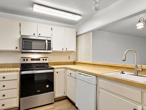 Lovely 1 bedroom in the popular Sixty-01 Community. Spacious single-floor living offers freshly painted walls + carpet, stainless steel oven/range, microwave, & water heater garbage disposal all NEW in 2023. Patio sliding doors leading to private balcony overlooking serene landscape. Resort style living with wonderful amenities that include athletic courts, an exercise room, trails, four outdoor pools, sauna, clubhouse, game room, & community pea patches. Enjoy your own private carport, additional storage. Just minutes from DT Redmond, Kirkland, Bellevue, Microsoft & all amenities.