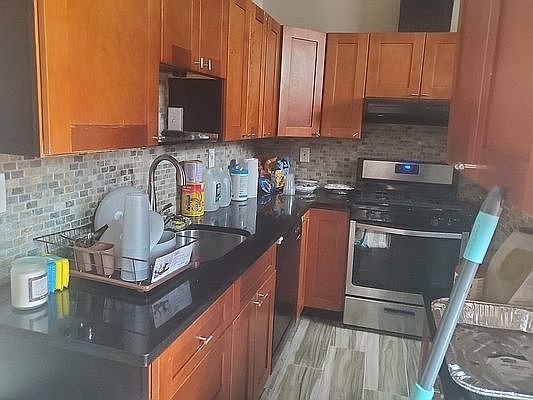 This is a freshly re-done modern 3 Bedroom, 1 bath apartment on a quiet, tree lined, residential street, across from a good school and near transportation, shopping, restaurants, parks, etc, on the second floor of a two story walk up, in the heart of Bensonhurst, Brooklyn. Beautiful skylights and art deco shelving replace windows in two of the three bedrooms. A third skylight brings the sun into the freshly renovated bathroom. The master bedroom has a view of trees and has its own private half bath. There is a large, spacious living room, a separate dining room and a large, spacious outdoor deck. The modern kitchen appliances include a dishwasher. The flooring and the walls have been re-done over the past month. There are large walk in closets in every room. The clutter you see will be gone and everything will be broom clean, in the coming days. This apartment will go quickly so please contact Venus to make an appointment.