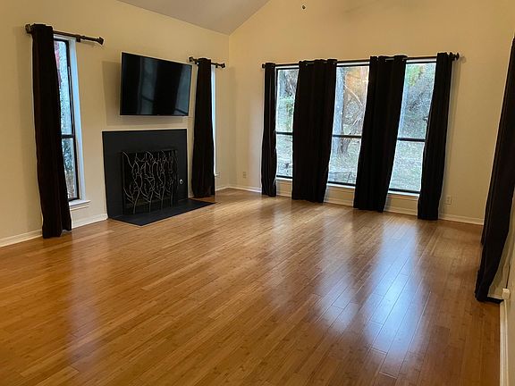 This beautifully updated 2 bed 2 bath townhome is a nature lovers dream. Located on its own quarter acre lot this peaceful retreat, just 10 minutes from downtown, benefit from floods of natural light and a unique treehouse feel. Enjoy the privacy of this home with no neighbors on three sides, and backing up to a greenbelt creek. The home boasts natural bamboo floors, custom dual master closets, ample storage space and brand new carpet in the bedrooms. The fully redone garage make for a wonderful home gym, workshop or just a beautiful place for your car. Washer/dryer included Mounted 55" 4K TV included Blackout curtains included August Smart Lock included Ecobee Smart Thermostat included Gas Fireplace Gas Stovetop Master Bedroom includes 2 large closets Easily accessible attic provides ample storage space Dishwasher, Water Heater, AC, Carpet all recently installed Parking for up to 3 vehicles Small pets allowed (up to 30 lbs): $200 cleaning fee + $800 refundable deposit Water bill included in rent Renter is responsible for other utilities No indoor smoking allowed Small pets allowed (up to 30 lbs): $200 cleaning fee + $800 refundable deposit 1st Month Rent + Applicable Deposits are due up front Applicants must provide current income, must earn at least 2x rent, and must provide 2 most recent paystubs. Applicants must provide previous rental / mortgage history, demonstrating responsible payment and upkeep. Applicants must provide credit history. Applicants must provide criminal history.