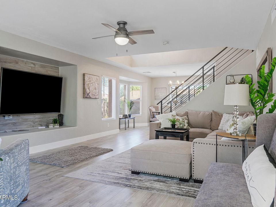 Welcome to this completely gorgeous fully remodeled home within the gated community of Mountain View! On trend upgrades with water resistant wood flooring throughout, custom cabinetry, granite counters, SS Appliances, new lighting and well thought out upgrades in every room. There is plenty of room for all in this open floor plan home with a huge loft that can be used as an extra bedroom, office or den! Located on a quiet street, this light and bright home, touts a beautiful mountain view! Just a few minutes drive to great restaurants, shopping and 15 minutes to the airport. Community pool, spa & clubhouse too. Come and check it out!