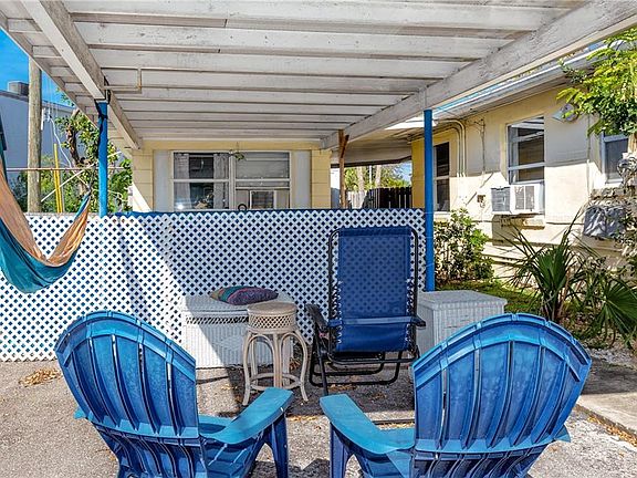 The location of this rarely available income-producing 4 plex in the heart of St Pete Beach cannot be beaten. Just blocks from the beach and the Corey Avenue Shopping district, units include a 2/2, two 1/1s and an efficiency. One of the 1/1s has a new stove, fridge, hot water heater and window AC. Low maintenance and lots of potential!