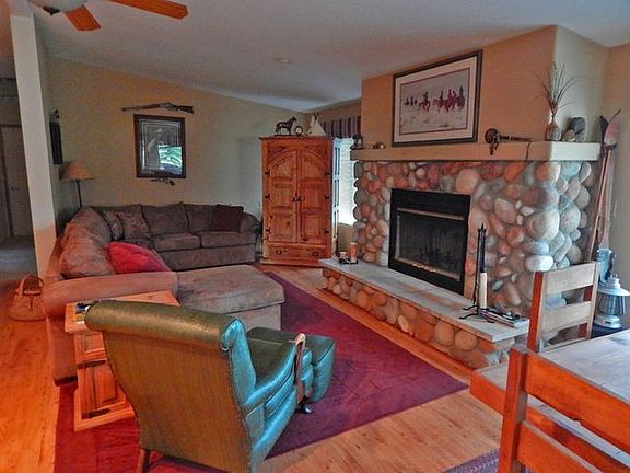 Price Reduced! Stunning Lk Roosevelt wtr front acreage w/ immaculate 3 bd. 1 3/4 bath home on 1310 line.. Home features beautiful log siding for that woodsy feel. Fantastic river rock fireplace, knotty pine cabinets w/ S.S. appliances & huge covered deck. Just a short stroll to the lake & the sandy beach. Gorgeous manicured grounds & cozy fire pit for those enjoyable evenings. 30 x 40 shop for all the toys plus water & electric hook-ups for an additional RV. Beautiful park-like setting.