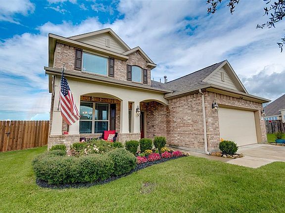 Why wait and build when you can spend your Holidays with family in this beautiful 2,713 sqft home. It boasts of 4 bedrooms and 3.5 bathrooms and is in the desirable subdivision of Walnut Creek. There was NO FLOODING in or around in the community during Harvey. Only minutes from local shopping and dining, you will not find a better location. This home sits on a cul-de-sac and showcases tons of upgrades including granite countertops, 42" espresso cabinets, gas fireplace, bronze finishes, huge backyard, large covered patio in both front and back, storage shed, playground, no back neighbors, and amazing sunsets. The home has easy access to Hwy 69 and is walking distance to the elementary school and neighborhood play grounds.