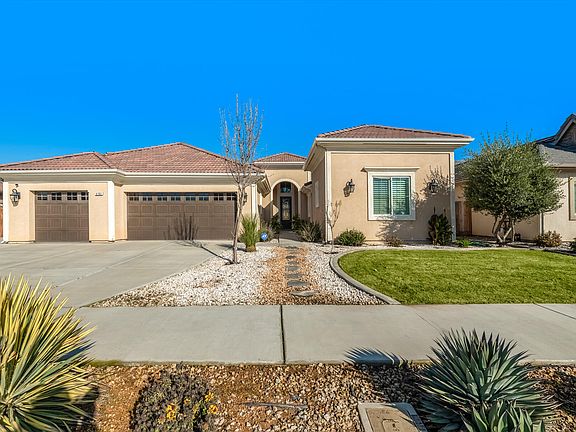 Summer Move-in! This beautiful 4 bedroom home with over $58,000 + of upgrades is located in the highly desirable community, San Marino in Northwest Visalia! This stunning home has OWNED SOLAR, pool, spa and RV parking. Interior features, upgraded door hardware, spacious great room open to kitchen and dining, fireplace with mantel, built in cabinets in the great room, gourmet kitchen with granite countertops, new faucet, white farm-look sink, island snack bar, upgraded stainless steel appliances with glass canopy hood, large designed pantry. Spacious master suite adjoining the bath with dual sinks, separate tub and shower and large walk-in closet designed by California Closets, with beautiful French doors. Indoor laundry room with sink. The backyard has a gorgeous pool, spa, covered patio with bamboo for privacy, and ready for you to enjoy an evening with family and friends.