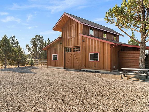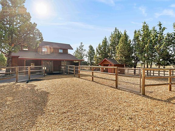 Exceptional equestrian property located on quiet cul-de-sac with craftsman style home and booming view of Three Sisters Mountains. Property features: Entire 10 acres fenced and cross fenced with wood rail and 2x4 no climb wire; 36x36 ft barn; Ample horse trailer parking; Heated/insulated tack room with sink and hot/cold water; 12x36 ft drive-through isle (10-ft overhead clearance); 3 stalls with large attached paddocks; 20x30 ft loafing shelter; BLM/USFS equestrian trailheads nearby; Large pond with waterfall feature; Home and barn recently stained/painted; New composite decking and large paver patio. Interior features: Open living floor plan with high vaulted ceilings; Wood flooring throughout main level; River rock fireplace; High end stainless appliances; Granite countertops; Primary bedroom with large walk-in shower, double vanity, soaking tub, 2 walk-in closets, deck access; Office on main level; Huge upper bonus room; Balconies on upstairs bedrooms.