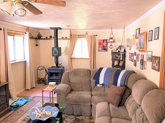 This property is down in an area known as Camp neighborly area!! Great area to have a place. This home or cabin is strong built mostly steel frame construction!! Very nice looking and well maintained home, 3 bedrooms, 1.5 baths, could be 1.75 baths easily. 9.1 acres of usable property! 2 car garage with work shop and wood heat. Also included is a great out door area, garden area, deer and privacy fence around the entire out door living area!! Hot tub also included.