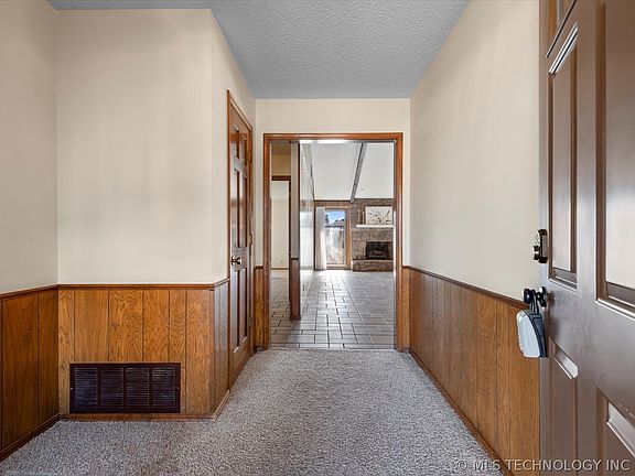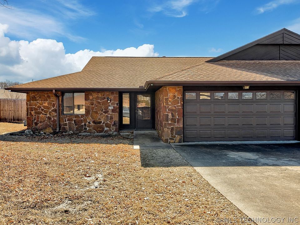 Wonderfully maintained half duplex! The spacious greatroom features a vaulted ceiling with beams, cozy stone fireplace and built-ins. A small dining area sits off of the kitchen where all appliances remain with the home. The yard is fully fenced, and the saferoom in the garage remains.
