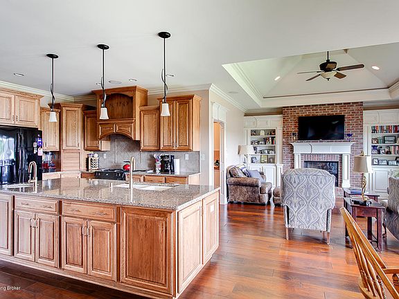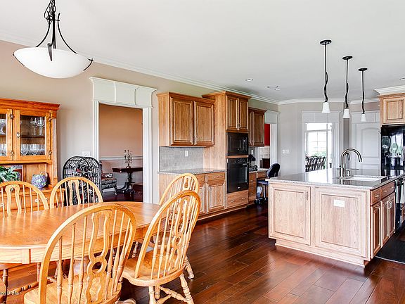 This beautiful custom walkout ranch built by Provident Homes sits on almost .74 acre lot with great views. The light filled house has a classic design with a modern floor plan and custom trim and designer details throughout. The eat-in kitchen includes a large pantry, wonderful custom cabinets, and granite counter tops on a wide island that opens to a spacious hearth room with high vaulted ceilings and a wood burning fireplace. From the family room, you enter into a roomy screened in porch for those wonderful summer evenings. And next to it is a deck perfect for grilling out. The three car garage opens into a passage with built in cabinets next to a roomy first floor laundry which also includes a number of cabinets.