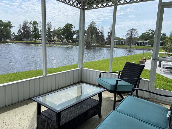 6703 John Ave, Ellenton FL. 34222 Ridgewood Estates 55+ Pet Friendly Community This home is on a rented/leased lot Come check out this large 2BR/2BA mobile home on the pond! Enjoy the water views from the screened porch. There is an attached full sized 1 car garage and ample carport coverage for an additional car. A golf cart is included in the sale. There is carpet and tile in all the right places throughout the home. The indoor laundry room includes washer/dryer and built-in desk setup. The galley kitchen has a bay window, ceramic tile, custom cabinets, ample storage, vaulted ceilings, a skylight and a casual eat in area. The kitchen comes with all the appliances including; refrigerator, oven/stove, dishwasher, microwave and garbage disposal. There are separate living and dining rooms. The master bedroom has carpet, vaulted ceilings, a walk0in closet and a master bath en suite. The master bath has tile flooring, a skylight and a single sink vanity with a walk-in shower. The guest bedroom has carpet, a ceiling fan and a closet. The guest bathroom has tile flooring, a skylight, a single sink vanity and a tub/shower combination. The lot rent is $946mo. and includes lawn mowing, edging and blowing and the community amenities as outlined below. Ridgewood Estates is a well-maintained GATED community with 2 heated pools, a hot tub, shuffleboard & tennis courts, horseshoe pit, pool side club house with a library, fitness center & billiards room. There is also a large "event" center used for many HOA sponsored events. Cards, Bingo, Chair Volleyball, water aerobics.... just to name a few