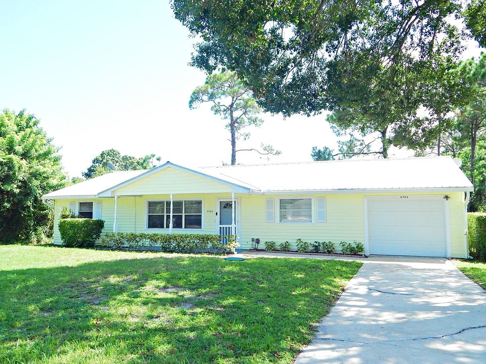 Find pride in ownership in this turnkey home in desirable Lakewood Park. After the amazing curb appeal, you'll notice that you have no neighbors on either side on this quiet street. The back yard is also well protected, giving you COMPLETE in the back yard and screened-in patio. Further enjoy worry-free vinyl siding and a metal roof! Ceiling fans in all rooms, newer AC and appliances, and tile throughout! This makes a perfect starter-home, investment, or is a great place to relocate to with county-only taxes! Start packing your things and come on over with an offer before it's gone!