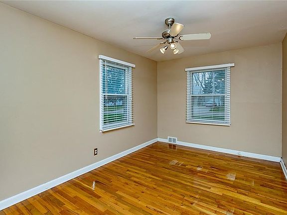 Cute 3 bed 1 bath home with tile floor in kitchen and nice sliding doors to back deck with a partial fenced in back yard. Hardwood floors throughout main level with 2 bedrooms and a full bath. Upstairs is 1 large bedroom with carpet.